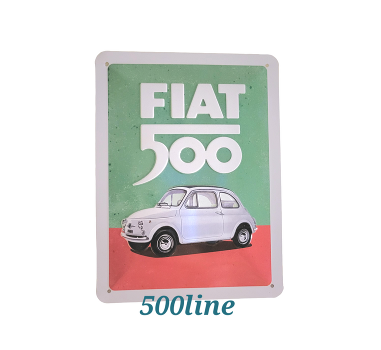 Targhetta insegna in metallo FIAT 500 con tricolore ITALIA