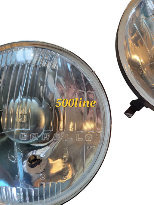 Coppia fari Anteriori tipo Carello Fiat 500 F L R d'epoca alta qualità con guida a destra I fari anteriori tipo Carello per Fiat 500 F L R sono pr...