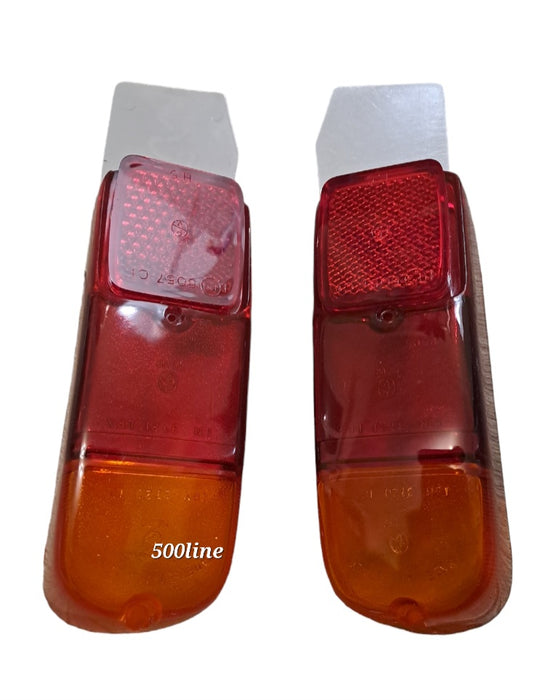 Coppia plastiche fanali posteriori Fiat 500 N D 600 D E, con catadiottri come da originale alta qualità d'epoca.