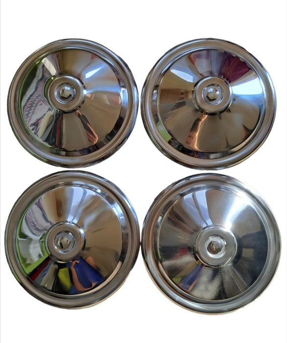 kit 4 coppe ruota cerchio fiat 500 N D F prima serie, Alluminio comprese viti coppa. Il kit comprende 4 coppe Alluminio Fiat 500 F fino a maggio 1966, e fiat 500 N e D. Dai lucentezza ai tuoi cerchi montando queste coppe di Alluminio luccicanti. 500line offre tutti i consigli ai clienti sulla scelta del ricambio per la tua Fiat 500 N D F