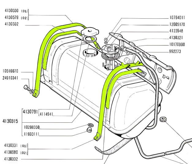 Il nostro Kit fasce fissaggio serbatoio benzina di Alta qualita' Fiat 500 F L R Giardiniera offre una resistente combinazione di materiali, rivestite in sughero e verniciato, per sopportare le vibrazioni meccaniche e i colpi d'urto. È un prodotto unico che contiene la classica Fiat 500 e la storia italiana in un simbolo italiano.