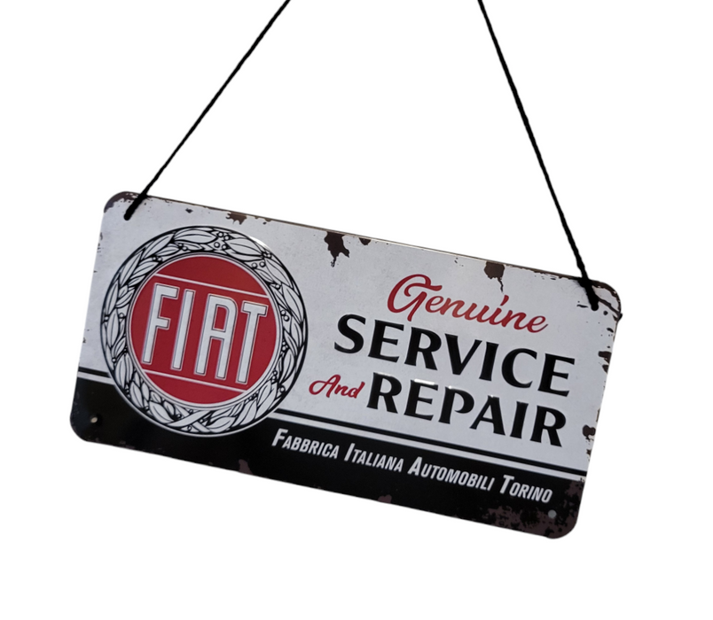 Targhetta insegna in metallo FIAT assistenza e riparazione in metallo